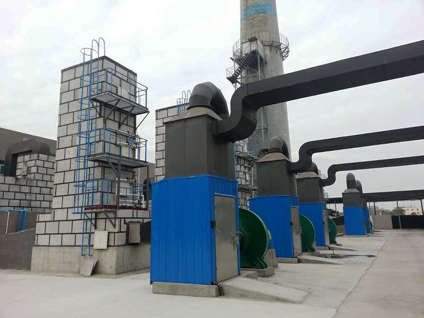 ?鏈條爐配套臭氧脫硝設備、兩臺濕式電除塵器、不銹鋼脫硫塔、花崗巖脫硫塔、及自動加藥設備。
